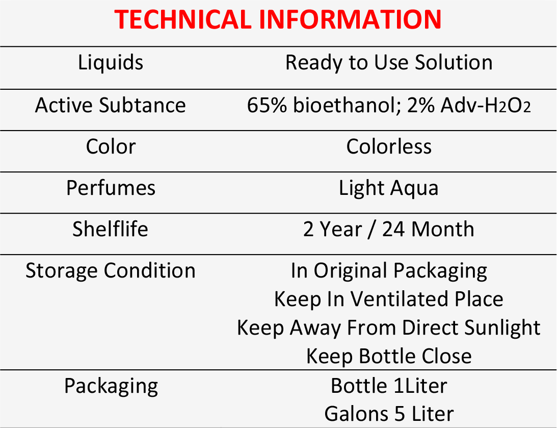 Adv-Room Infection / Adv-RI di-kombinasikan menggunakan teknologi Sprayer Electrostatic akan menebarkan secara merata Hydro-Alkohol H2O2 ke-seluruh permukaan, yang memastikan disinfeksi optimal kuman patogen dengan system oksidasi. Untuk efektifitas yang maksimal, gunakan pada ruangan yang sudah dibersihkan dan lakukan penyemprotan merata keseluruh permukaan peralatan dan permukaan ruangan.
